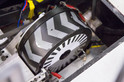The bike is fitted to a modified trainer to ensure you are pedaling. It’s technically a Wahoo KICKR below the paneling, albeit somewhat torn apart. You can see it here once the panels are removed.