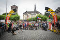 As all the press was waiting for the team cars to go through so we could escape, behind us nobody noticed a single Cofidis rider that had some sort of mechanical issue a mere 50 meters from the start line. The poor guy was just standing there next to the fencing waiting for his car to come by. No race officials noticed either, due to the slight bend in the curve and the trees. He was sorta in a hidden gap. It was only about the time that traffic broke that everyone looked to see why. Officials came running to sort it out, but by then it was already being resolved by the team car.