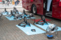 Also – probably the most interesting thing of the day for me on the trainer front was actually watching one of the team mechanics fold up a slate of Tacx Neo trainers. Seriously, it’s genius: