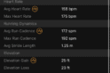 Also, you’ll get this screen (seen on a different run). And it’s this screen below that makes me cringe, especially compared to the Fitbit Versa series/Fitbit Sense, as well as the Apple Watch Series 3. While I appreciate the data they’re trying to convey, it’s just such a terribly ugly screen that feels like it was served up on an eHarmony date between CompuServe and AOL. I’m far from a user interface designer, but so many elements are clunky. Why display this gigantic grey area below a resting HR value for a workout? Why display thin grey sidebars at all? Why doesn’t it take advantage of the entire width of the screen? Why do we care about the lowest HR value for a workout? When has that *EVER* been valuable?