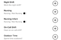 But these are customizable. There’s literally the longest list you’ll ever see of pre-defined choices. You can add this to your daily journal, as well as keep some of them toggled on semi-constantly (like parenting an infant).