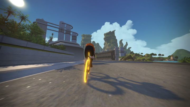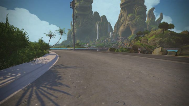 Alternatively, if you’re still a bit unsure on what this all means, basically you’re on jungle-ish islands with some temples and a random industrial area, and a few bridges connecting it all. Also, you do some riding on what I presume to be hardpack sand. I can’t entirely tell if it’s hardpack, but my bike didn’t sink in, and my graphics card isn’t fancy enough to show individual grains of sand.