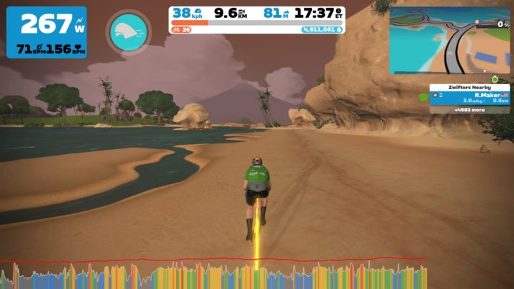 I’m glad you specified that your Urukazi screenshots were done on a PC because Zwift graphics on my Apple TV do not look nearly as nice! No fancy bike shadows for Apple TV Zwifters.