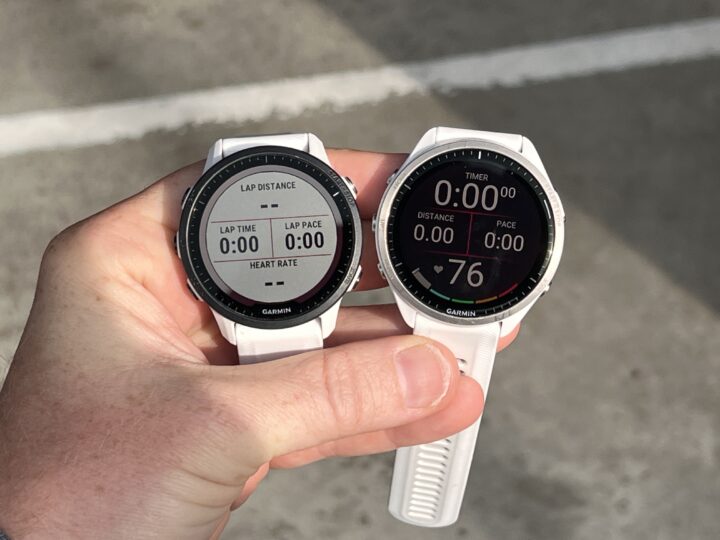 Just to see side by side the differences in display quality, here’s the Forerunner 955 Solar at left, and Forerunner 965 AMOLED at right: