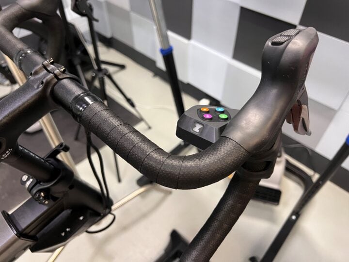 I really want this, but one major hiccup…I hang a towel over my handlebars/stem to prevent sweat from causing damage to the bike over the long term. Not that I sweat a ton, but it certainly drips on the cockpit more when riding inside. Also handy to have the towel right there to wipe of during a ride. The towel would cover all these buttons. I also rarely ride in the drops on my trainer