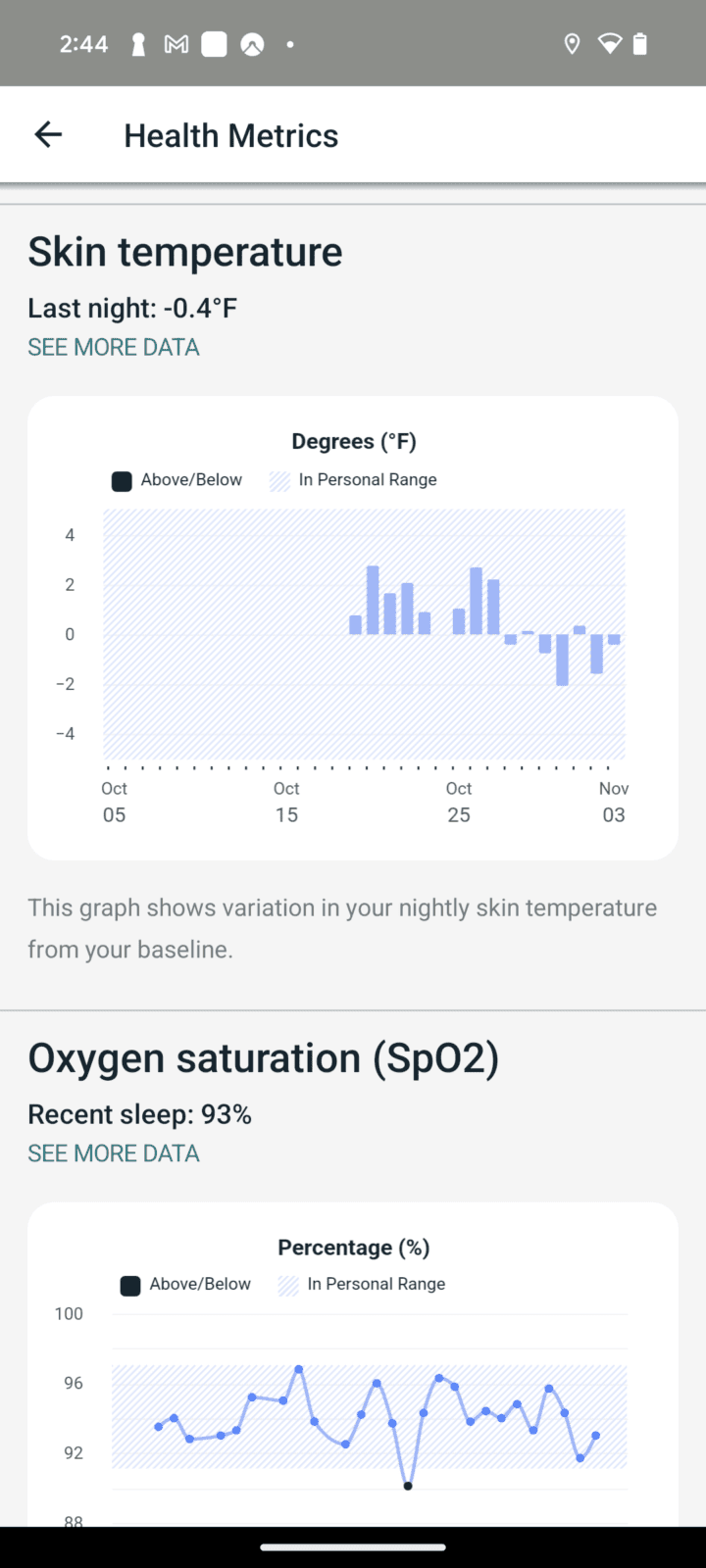Sure, there’s other coaching things and the like, but not data-driven components. That’s especially true in the ‘Health Metrics’ dashboard (which, I know is kinda confusing cause all of this is ‘health metrics’ (lowercase)). These pages are all fully accessible to non-premium members.