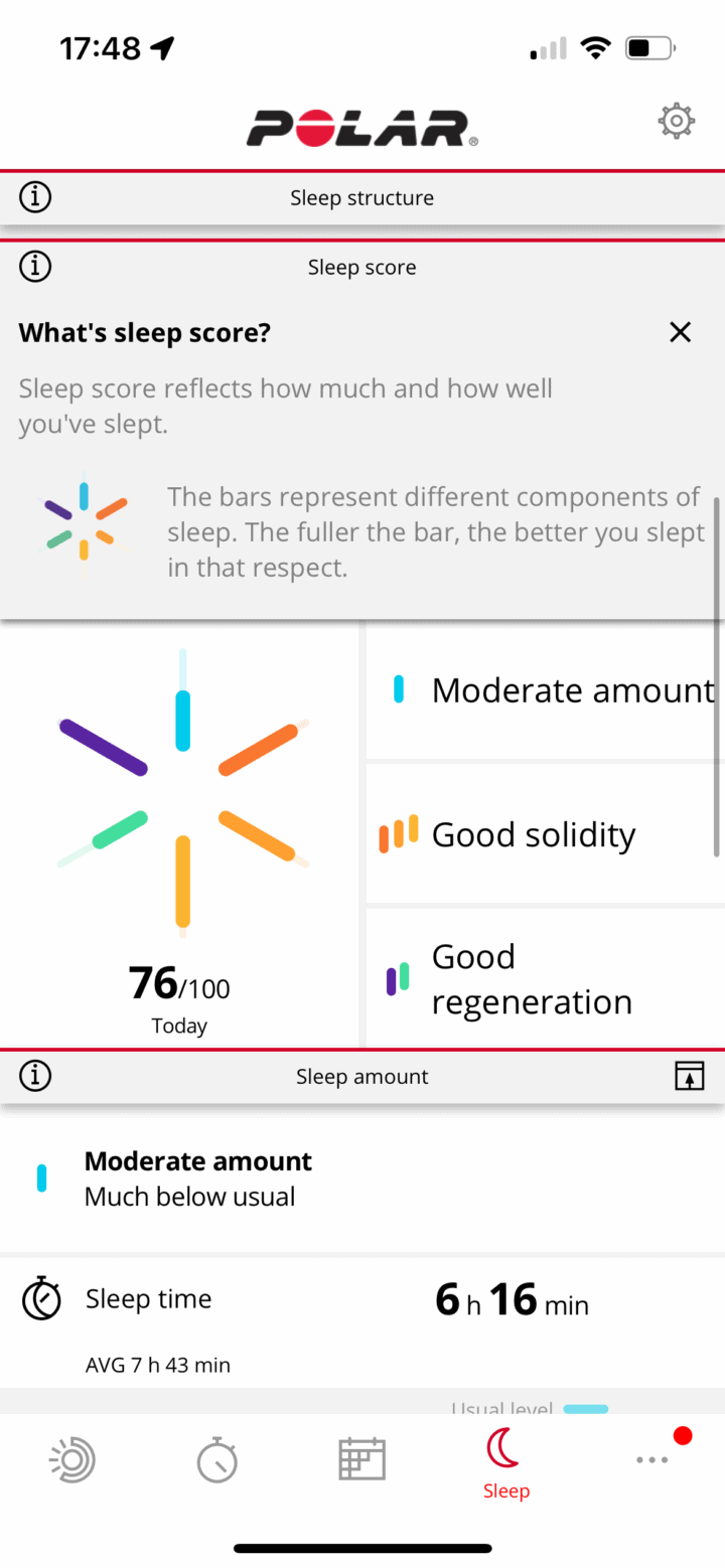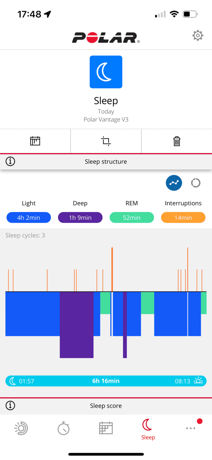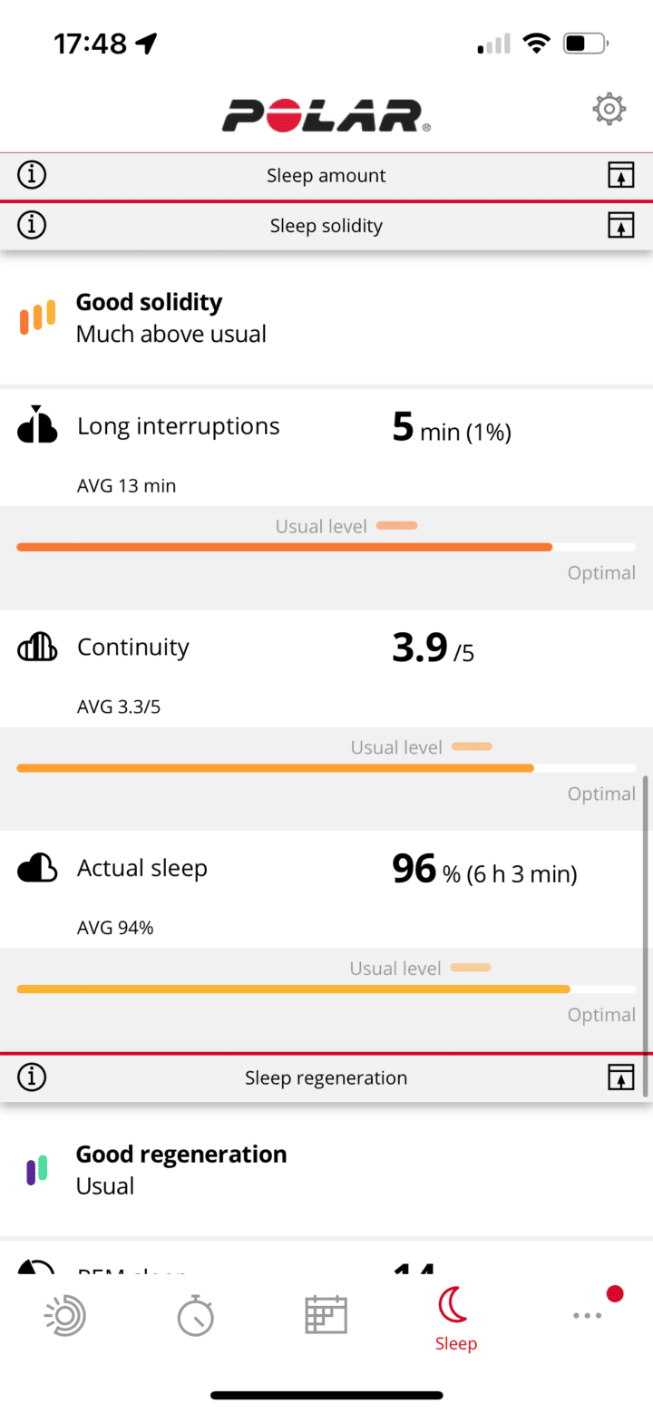 When it comes to the per-sleep night stats, you can also see this on the Polar Flow mobile app as well, which also includes all the sleep phases/stages (as it does on the watch):
