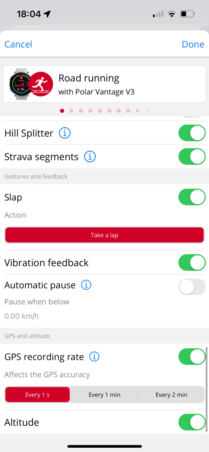 I’d like to see Polar offer up to at least 6 data fields per page here. I know it may sound like I’m nitpicking on things, but when you charge $599, you’re competing against other watches in that price ballpark. And all those other watches (COROS, Suunto, Garmin, Apple) – all offer more than 4 data fields per page (sometimes far more). I’ve long believed that products can’t be evaluated in a price vacuum, and little things matter.