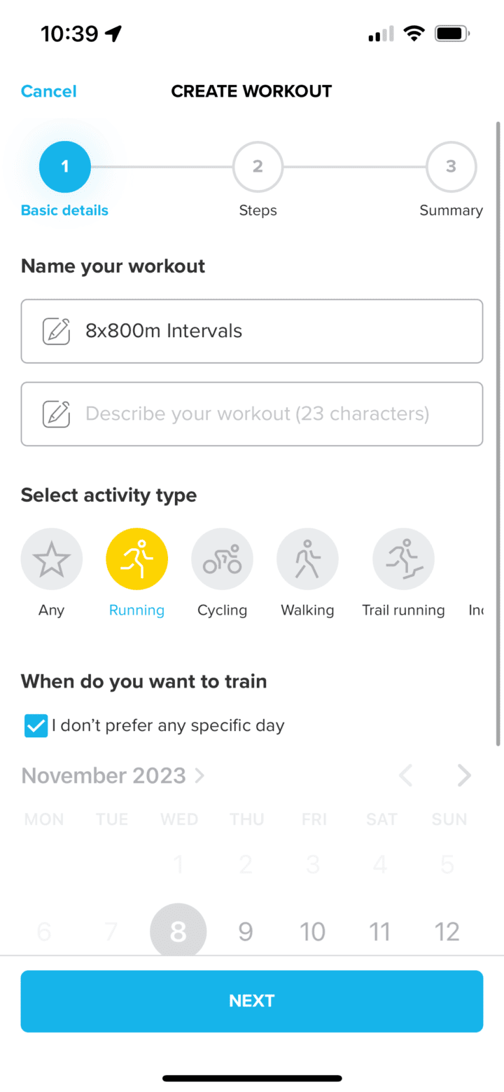 That said, Suunto did build-in a structured workout builder into their app, making it easy to get structured workouts on there. These still take up the slot of a ‘Suunto Guide’, but you can run them concurrently with an app, so it’s less of an annoyance there. You can create multiple steps and then send it to the watch (even to a specific date). Further, they also support TrainingPeaks structured workouts, as well as workouts from numerous other connected platforms.