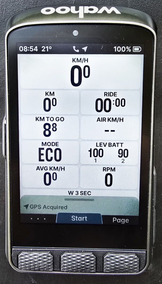 So with all that configured, let’s go and ride. Again, I’ll cover navigation later on. As you ride, you’ll see your data pages automatically displayed. You can swipe through them using your fingers, or press the page button: