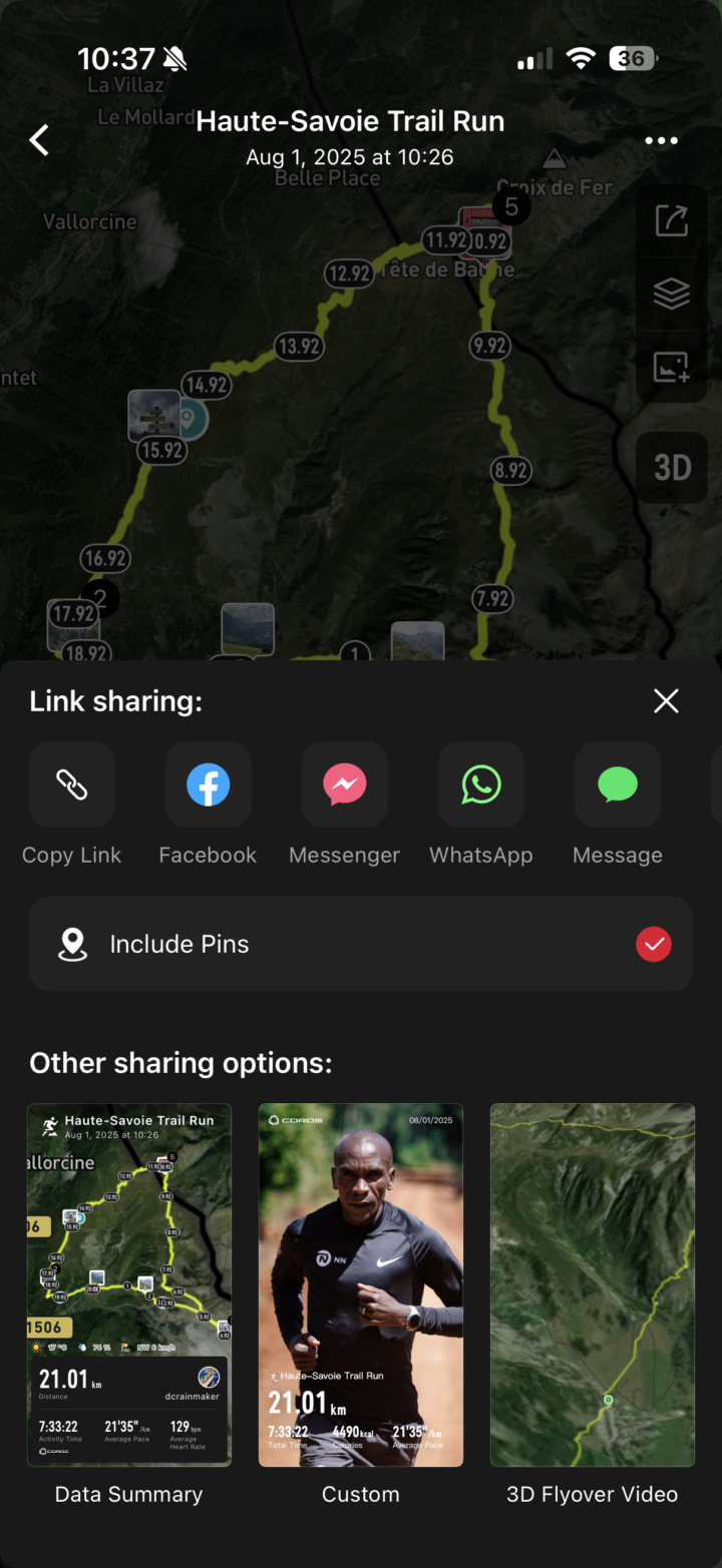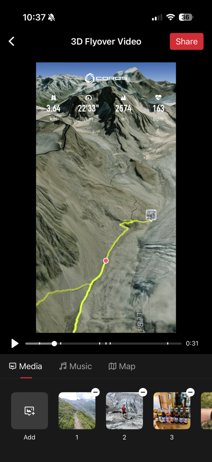 Now, what’s cool is that COROS has a new ‘journaling’ option, which lets you add photos and videos to these activities, and then share a public URL (you’ll also notice there’s a new 3D maps option, including making a little downloadable video). Further, it’ll automatically show you the photos/videos from the time of your activity, and on the 3D Flyover video, you can add music automatically too. It’s pretty cool.