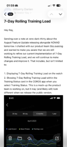 Did their email about Training Load also say if they will adapt this to be 7-day-trailing for existing watches as well? Their current implementation is simply stupid.