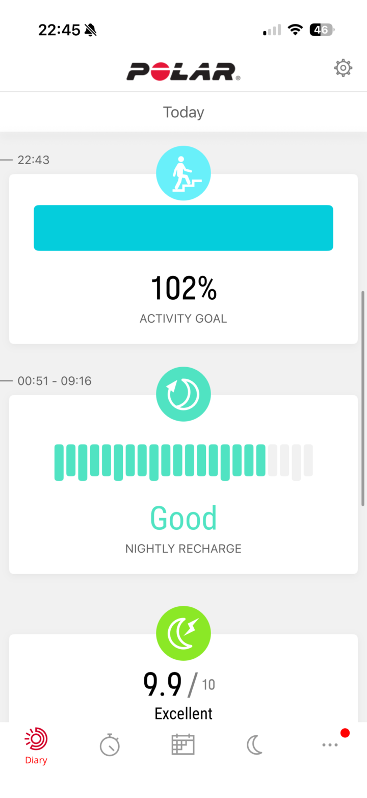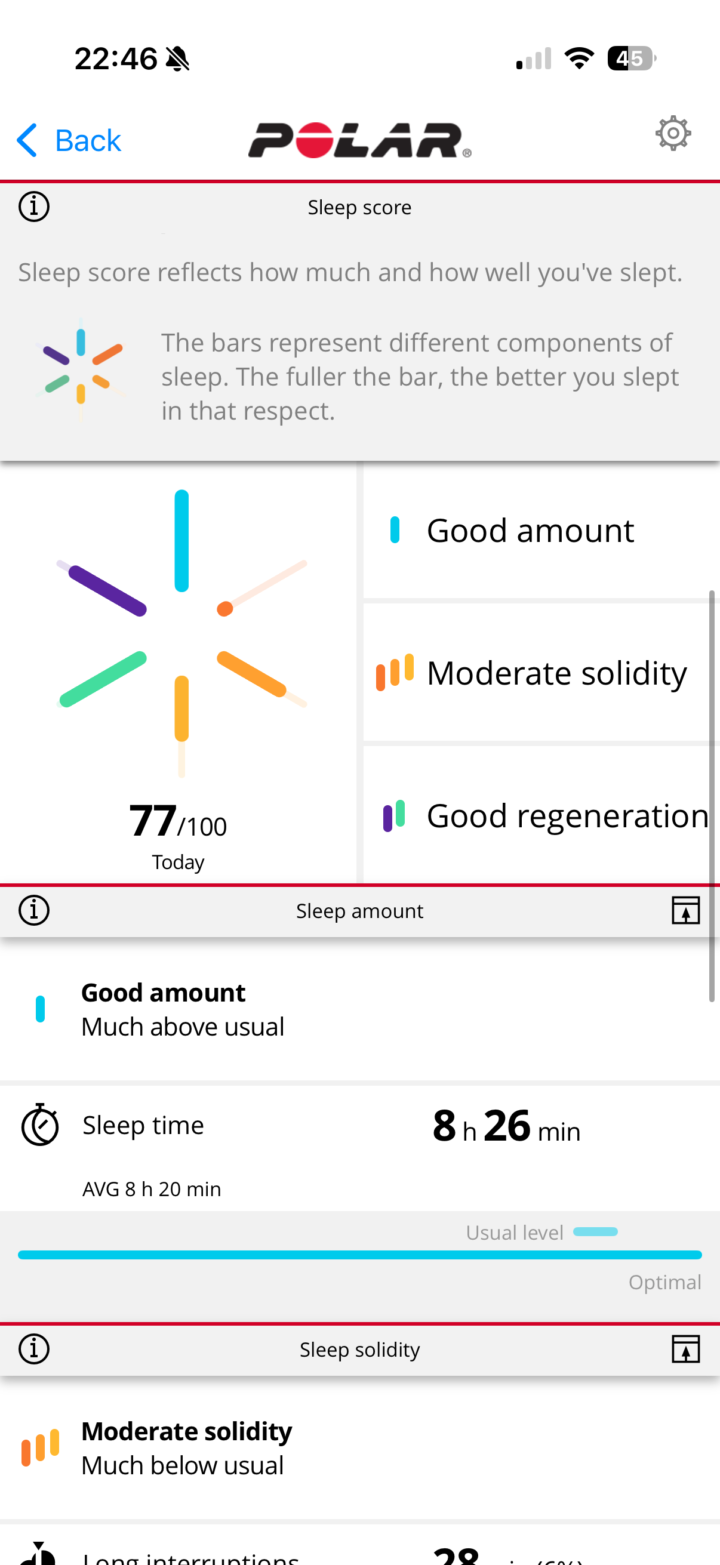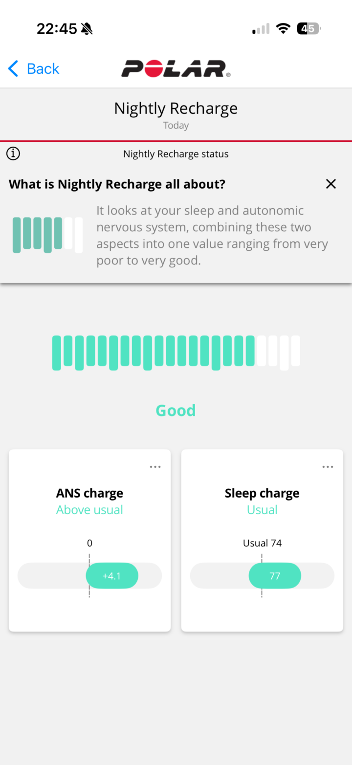 In any case, waking up, you’ll see your sleep metrics within the Polar Flow app. The app is identical to the existing Polar Flow app. You can see my sleep times, sleep phases, HRV metrics, etc…