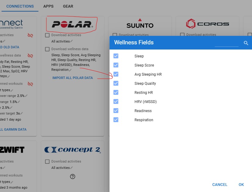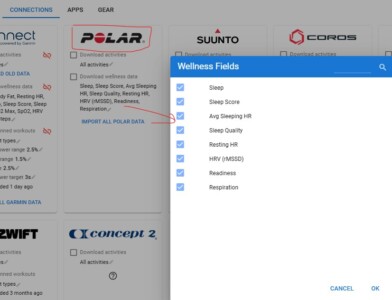 I don’t see any mention about integration of the data into 3rd party apps, eg. Intervals.icu, so would be asking how much data is available to integrate? On the settings page (Intervals), for Polar, it has Sleep, Sleep score, Ave Sleeping HR, Sleep Quality, Resting HR, HRV (rMSSD), Readiness and Respiration, as well as All (or filtered) activities. So I’m sure all the metrics and activities will push to Intervals.icu