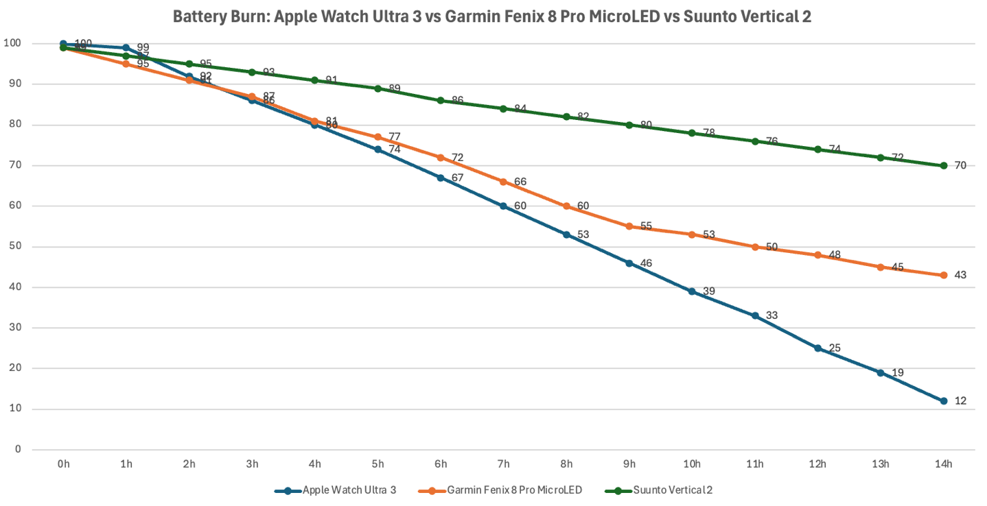 Ultra (all-systems single-band, no wrist HR): 90hrs vs 110h