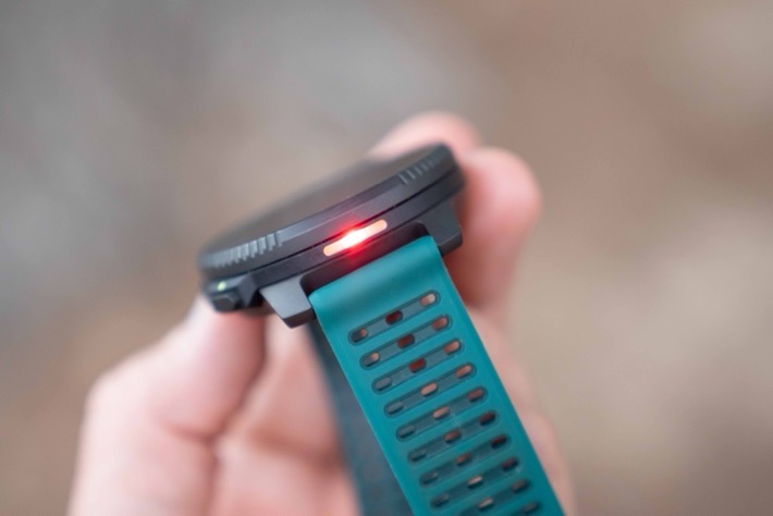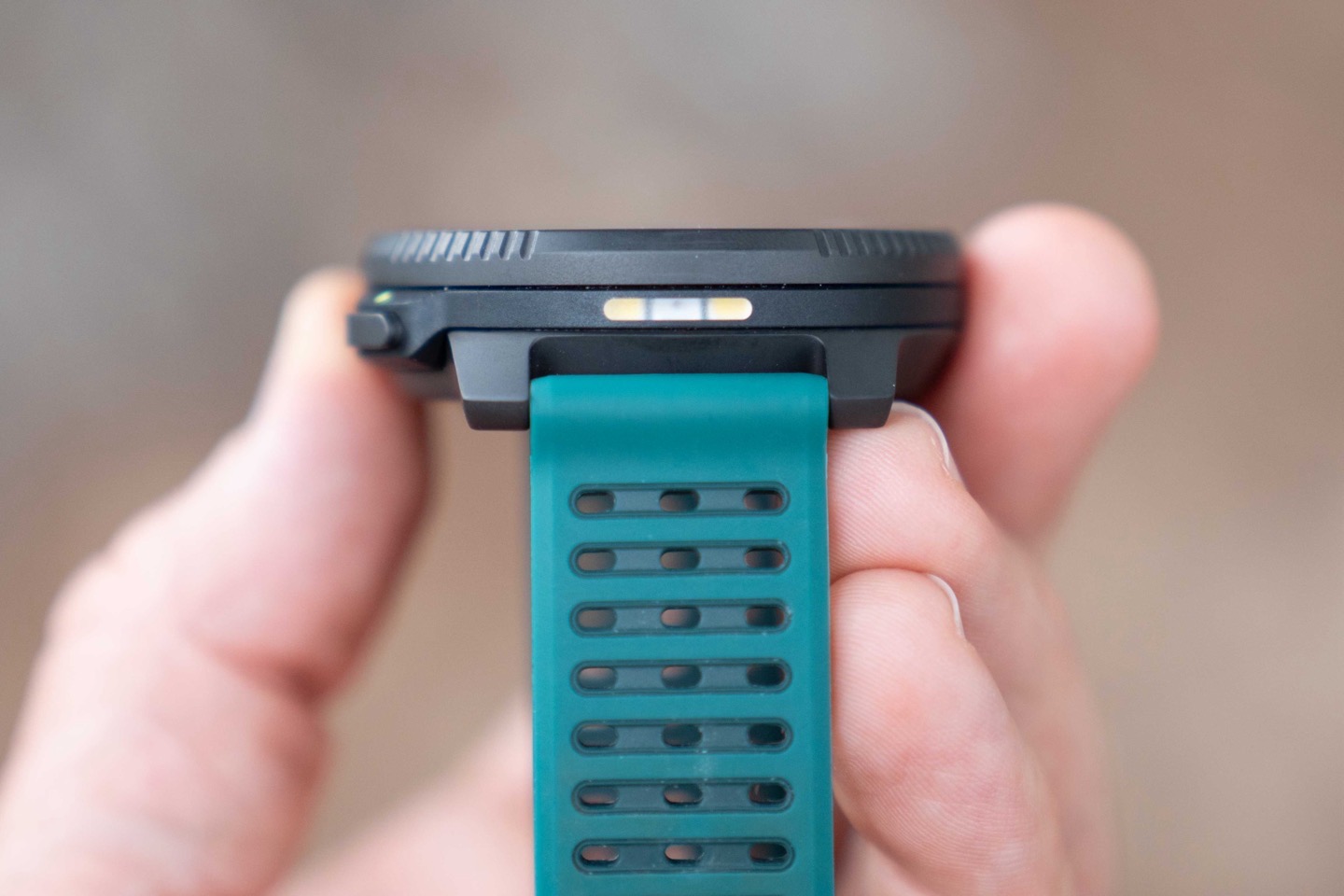 We’ll do a quick diversion to the flashlight, which is the first time we’ve seen one on Suunto’s lineup. Previously, they’ve just used the screen as a flashlight. Now, it has dedicated LEDs on the front: Two white LEDs, and one red LED.