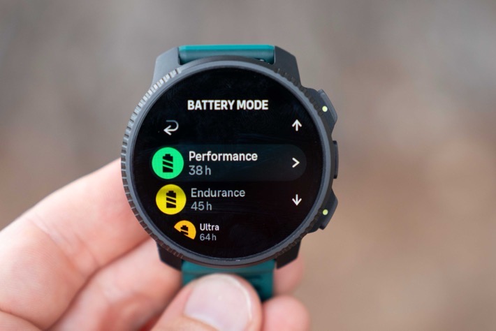 When you open up the sport mode of your choosing, you’ll see the status of GPS, heart rate, and battery at the top. The battery is showing hours remaining in that particular mode. You can change the battery mode to get more battery. By default, it’ll use the Performance Mode, which means dual-frequency GNSS, optical HR, maps, and more. Everything on basically. This is what I do all my testing in.