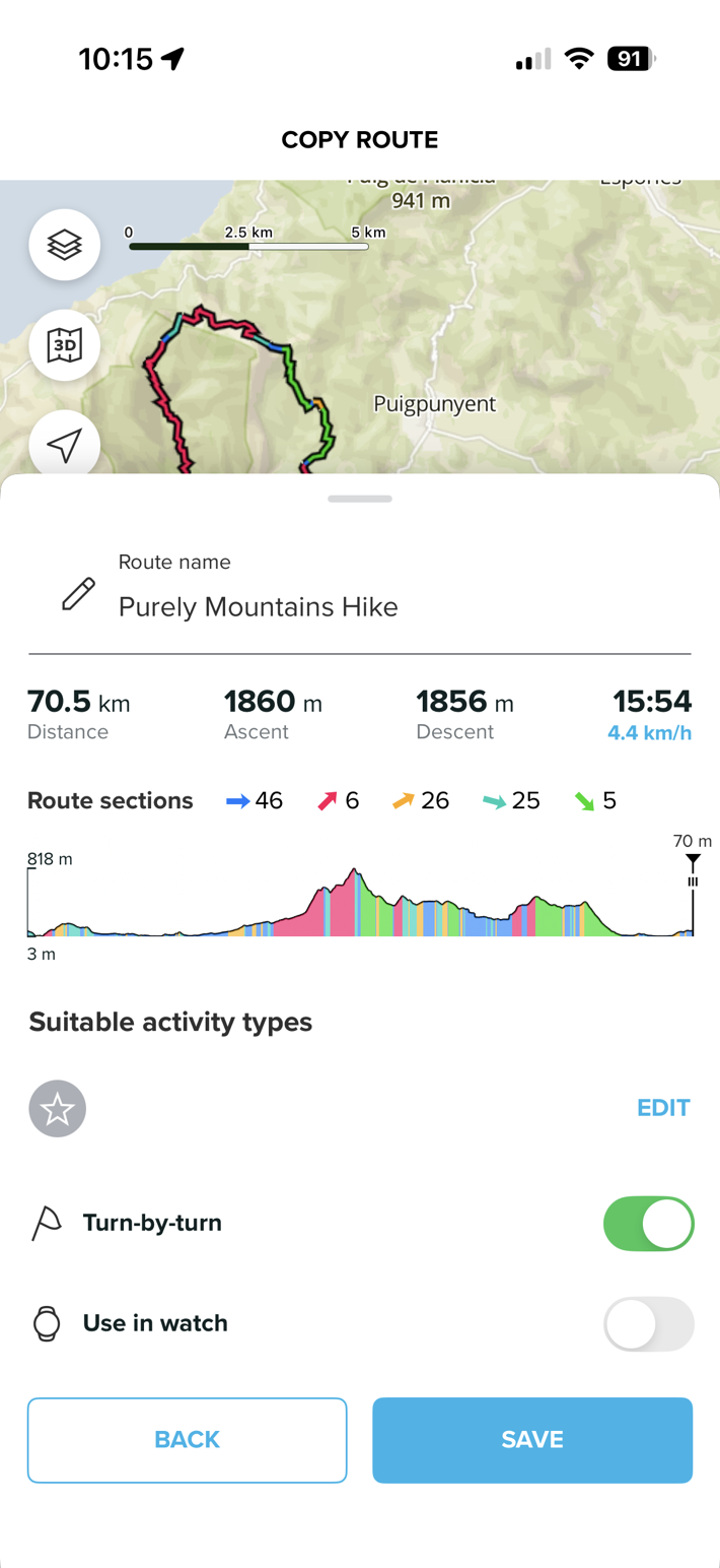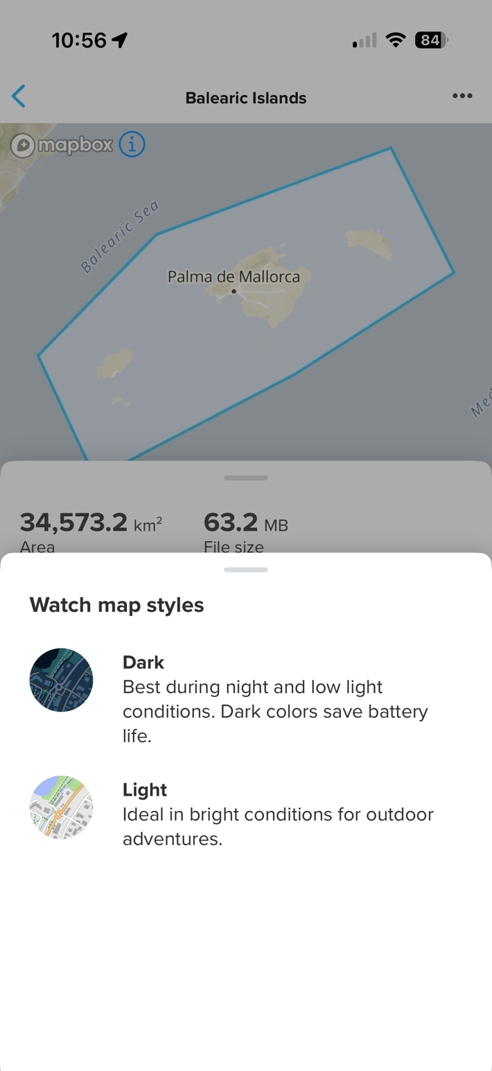 When it comes to mapping and navigation, the Suunto Vertical 2 includes free downloadable maps for anywhere on earth. It doesn’t have any maps pre-loaded though, so you’ll need to use the Suunto App to choose the countries/regions you want. As I’ve said in the past, this works well when you know the ‘official’ name of a region, but less well if you don’t actually know the county/regional name of an area in a foreign country, especially if you aren’t there yet. There’s no map view until you select that region, so it can be messy if you’re trying to pre-download maps prior to a trip to a foreign land, and have to decode/match-up all the official regional names for a given town.