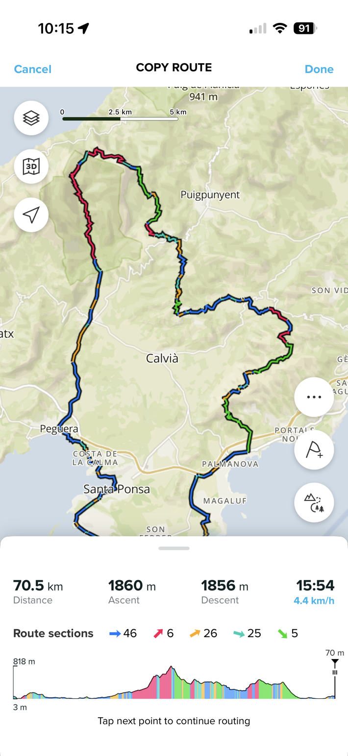 Not sure though how I’m misleading anyone. I literally just showed two photos of map views and didn’t say anything about trails or roads. There’s no paved roads at all in that area. It’s my backyard and I’ve had the ‘fortunate’ pleasure of riding and running literally every single combination of paths in there. OpenStreetMap’s underlying data may well be wrong, not sure. It’d be wrong for everyone. But, as I’ve learned in Spain, maps can often be wrong here.