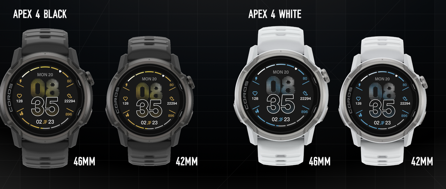 The unit is offered in two sizes, and two colors, per below. COROS says next month (November), they’ll allow you to order with a mixed black/white band (e.g. band white, case black), but not at launch.