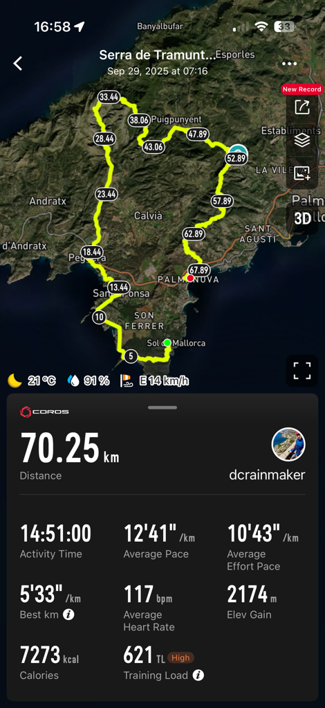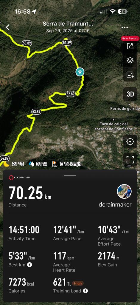So I then went and looked at my 70KM hike that I did, which included tons of mountain time.
