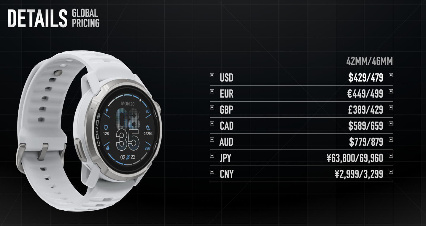 And more than that, it starts to fill in the gaps in the COROS lineup. That lineup starts with the COROS Pace 3 at $229, then the Pace Pro and NOMAD at $349, followed by APEX 4 at $429/$479, and then finally Vertix 2S at $699. Obviously, the Vertix is looking pretty long in the tooth at this point, especially given the Vertix 2S was barely a minor spec bump. Point is, they have not just a clear increasing of price vs features, but different options at different price points. The trick will be to maintain that pricing as they go forward with a Vertix 3/4, in order to undercut Garmin’s increasing prices. Just like before, when COROS tries to compete head to head with higher-end watches, it doesn’t end well. Instead, COROS is most deadly when they undercut on pricing and deliver strongly on features (e.g. Pace 3).