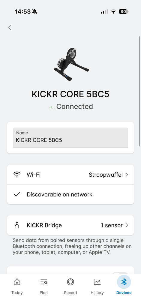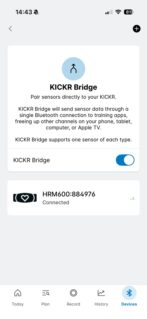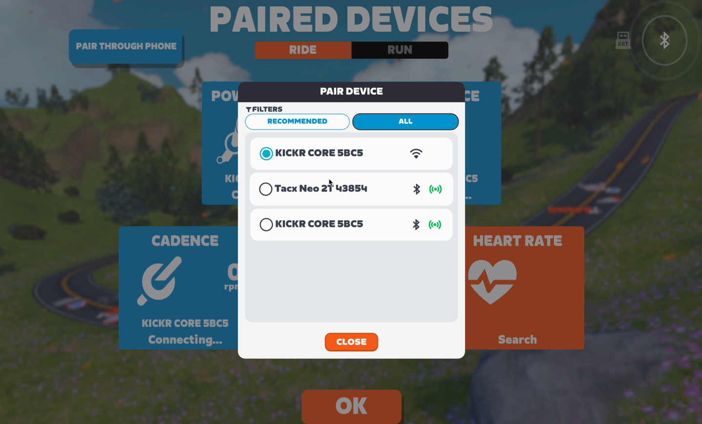 Once that’s done, you’ll see the heart rate data channel, but coming from the Wahoo KICKR CORE, in your pairing menu: