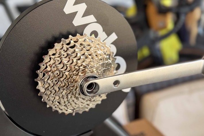 KICKR CORE 2 with standard cassette: In this case, you’ll need the cassette for your bike. By default, it comes with an 11-speed cassette, which is the most widely used cassette type for older bikes. But if you’ve got a newer road bike, it’s almost certainly a 12-speed. Cassettes cost about $50, and the tools another $10-$15, so it’s not a huge deal to swap it out. That’s why I did for my cassette version, as I’ll cover below. The benefit to a traditional cassette is that it works with every app ever made, without any funkiness or lock-in. The downside is if you have multiple bikes of different cassette types. You can also debate the pros/cons of virtual shifting (more on that later). I personally like the real-shifter feel of using my actual shifters, over virtual shifting buttons (the CLICK), but to each their own.
