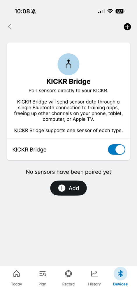 I then did what any toddler does, and randomly hit a bunch of buttons. Specifically, I selected from a slate of different options on the pairing screen, and after a bunch of clicking, the one that listed the Polar H10 (but with the trainer icon) did seem to hold. But all the other trainer icon ones in that HR section had various failure states (hang on connecting, shows null, shows stuck value, etc…).
