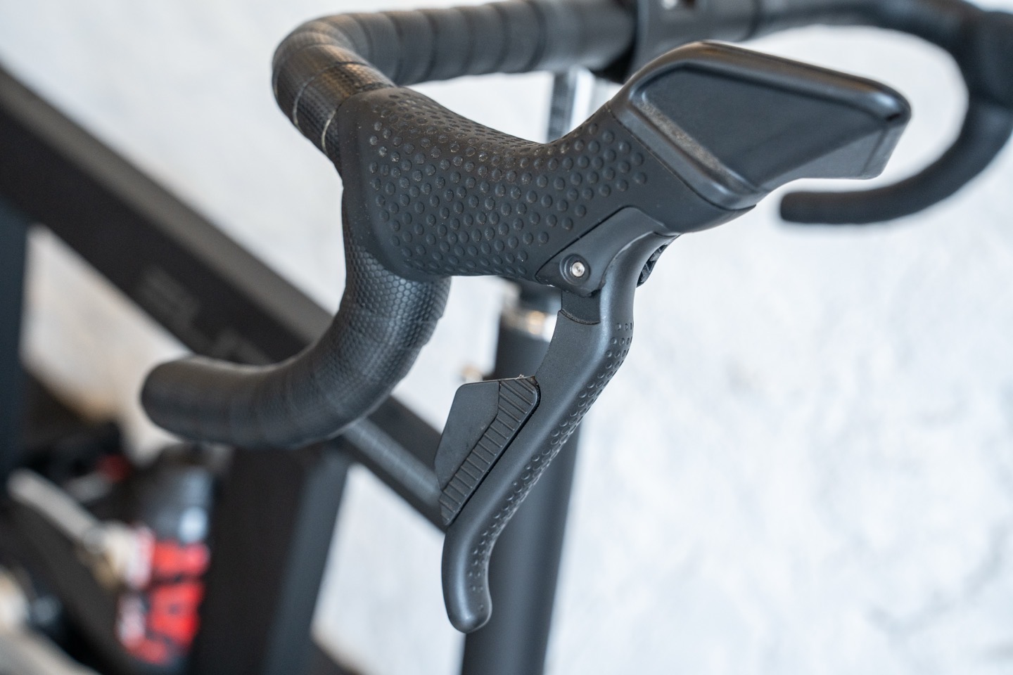 Then, down below you’ve got your shifters, which are mechanical in nature (thank you!!!). I much prefer these real-life style shifters over those found on the Zwift Ride. As I’ve said many times, the indoor bike industry has done so much to try and replicate the ‘real’ feel of a bike. So, changing to non-tactile buttons for shifting on the Zwift Ride has always been counterintuitive to me.