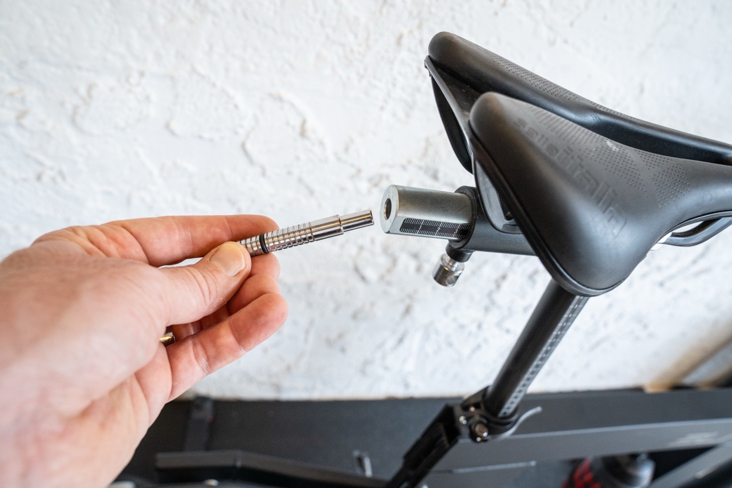 And then additionally, up near the saddle you’ve got adjustments as well by shifting the entire saddle forward/back, as well as shifting within the saddle rail system. In fact, now’s a good time to note that all of the adjustments are made with this handy tool that just slides into the back of the saddle rail system. Super clean and clever: