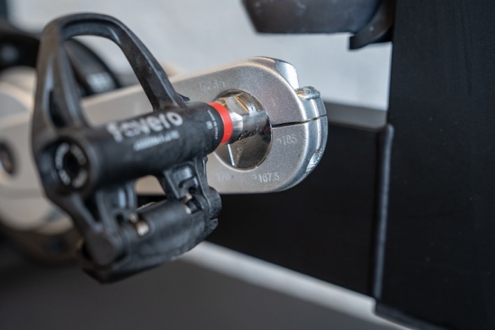 However, more notable is that you can adjust the crank length, by adjusting this little component. This is a bit different than the bear-claw style crank length setups we’ve seen elsewhere. Still, it supports 165mm ,167.5mm, 170mm, 172.5mm, and 175mm crank lengths.