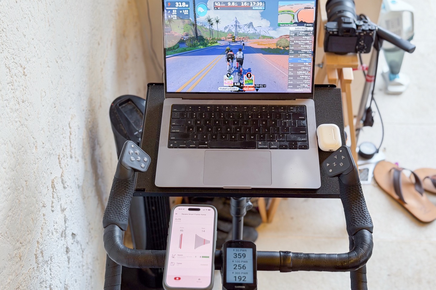 Beyond that, riding in Zwift is just like any other trainer/bike: You pedal, you suffer, you sweat, no biggie. However, one thing that’s worth mentioning is that it’s entirely silent. Very much like a Peloton bike or such, rather than the Zwift Ride, which due to its chain-based design, has more noise (though, not a ton). The only sound you’ll gear is very faint noises from the trainer internals, but again, since there’s no cassette with metal bits touching other metal bits, it’s very very quite.