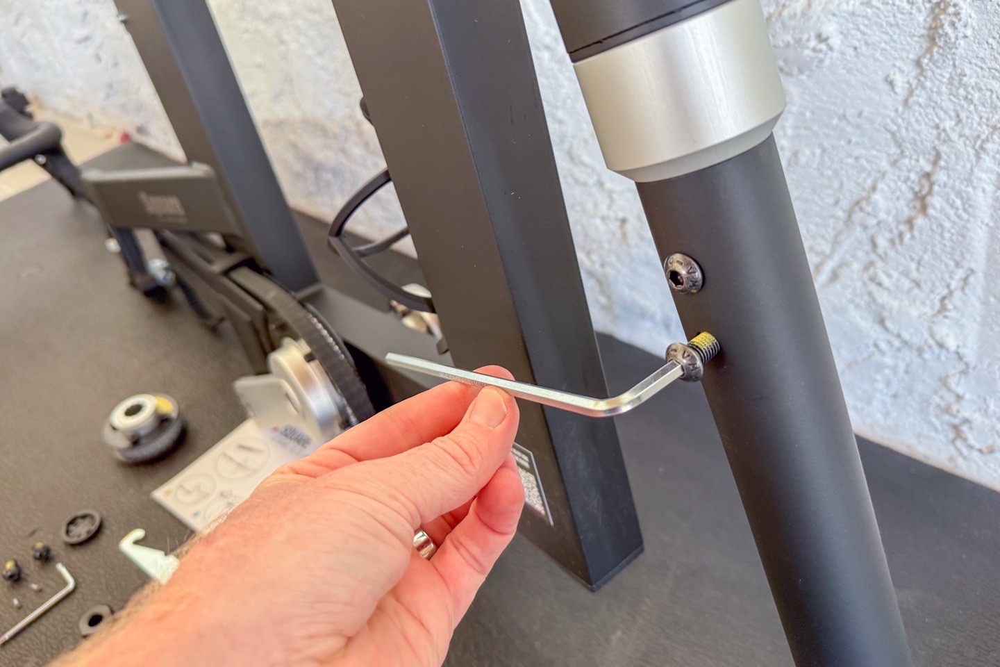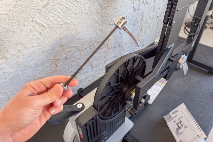 When it comes to assembly of the main unit, essentially, you’re attaching the main front ‘fork’ piece and handlebars. If you had an Elite Rizer, you’d skip attaching the front fork, and would attach that instead. This was quick and easy.