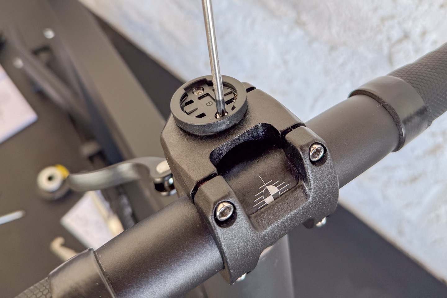 Notably, up front there’s an inclusion of a small Garmin/Wahoo mount. This is a nice touch, making it easy to mount your bike computer. You could also mount phones here too, with adapters.