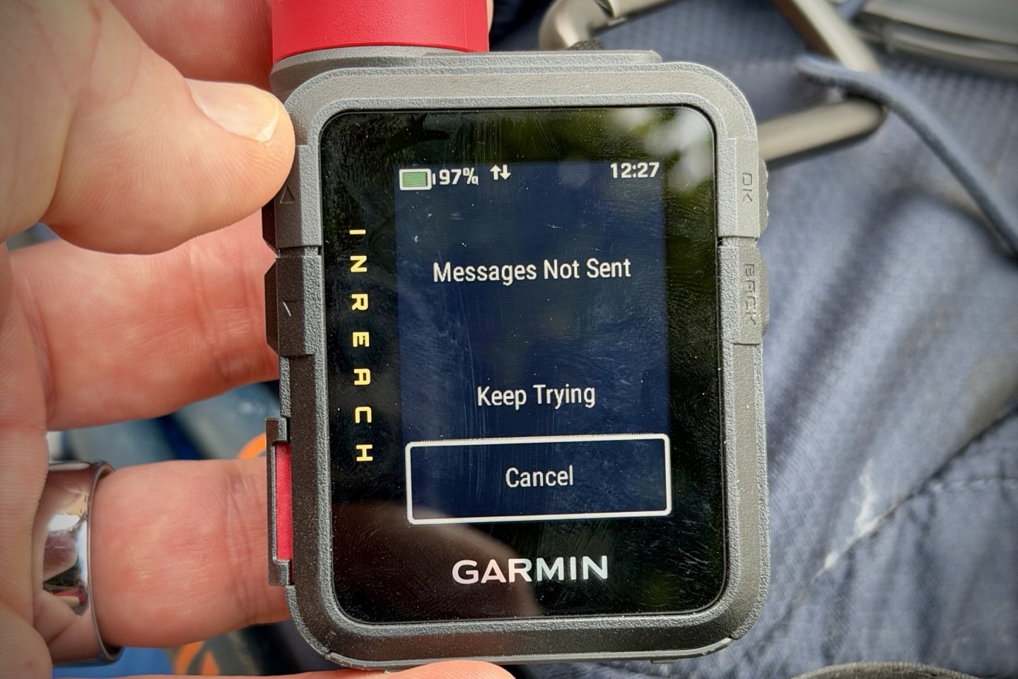 In the end, the only ‘fix’ for the issue was rebooting the device entirely. After which, it worked flawlessly for the rest of the hike. Of course, that might sound like an obvious/easy fix, but when you’re dealing with a device where the default ‘fix’ is to simply wait longer for the message to send, in an emergency, it might not be obvious to reboot it.
