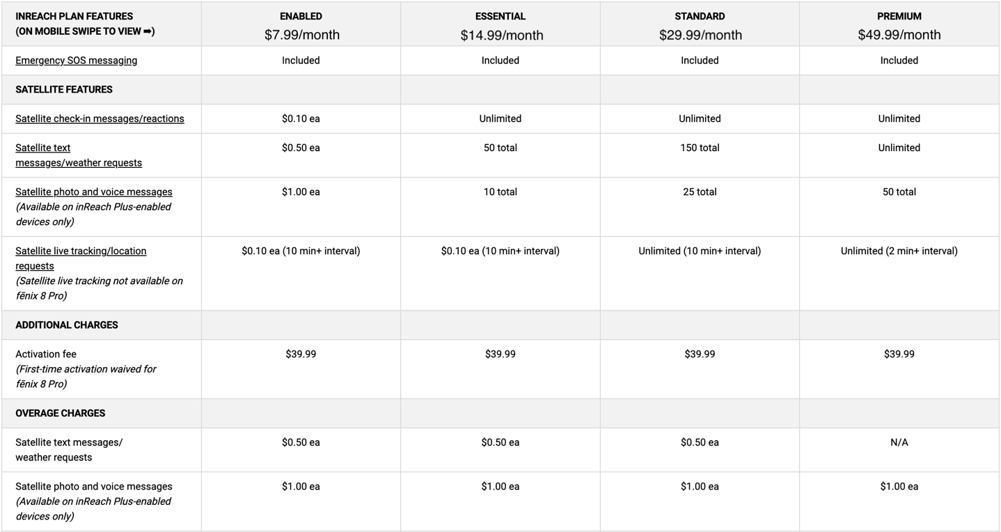 – Price increased from $399 to $449 for the base unit/features, and $499 for the inReach Mini 3 Plus unit
