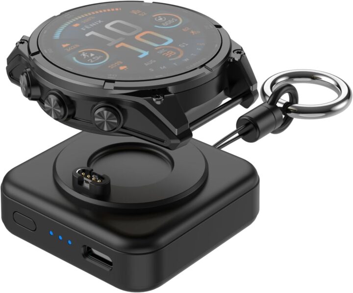 The specs on the unit are 1,200mAh, meaning that with most Garmin watches having about a 300-500mAh battery (depending on the unit/case size), so something like a Fenix 8 47mm, you’d be able to charge roughly 3-4 times.