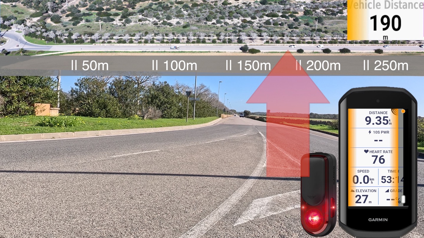 4) I used the MyBikeRadar app, which reports the vehicle detection distance transmitted by the radar itself (up to 196m)