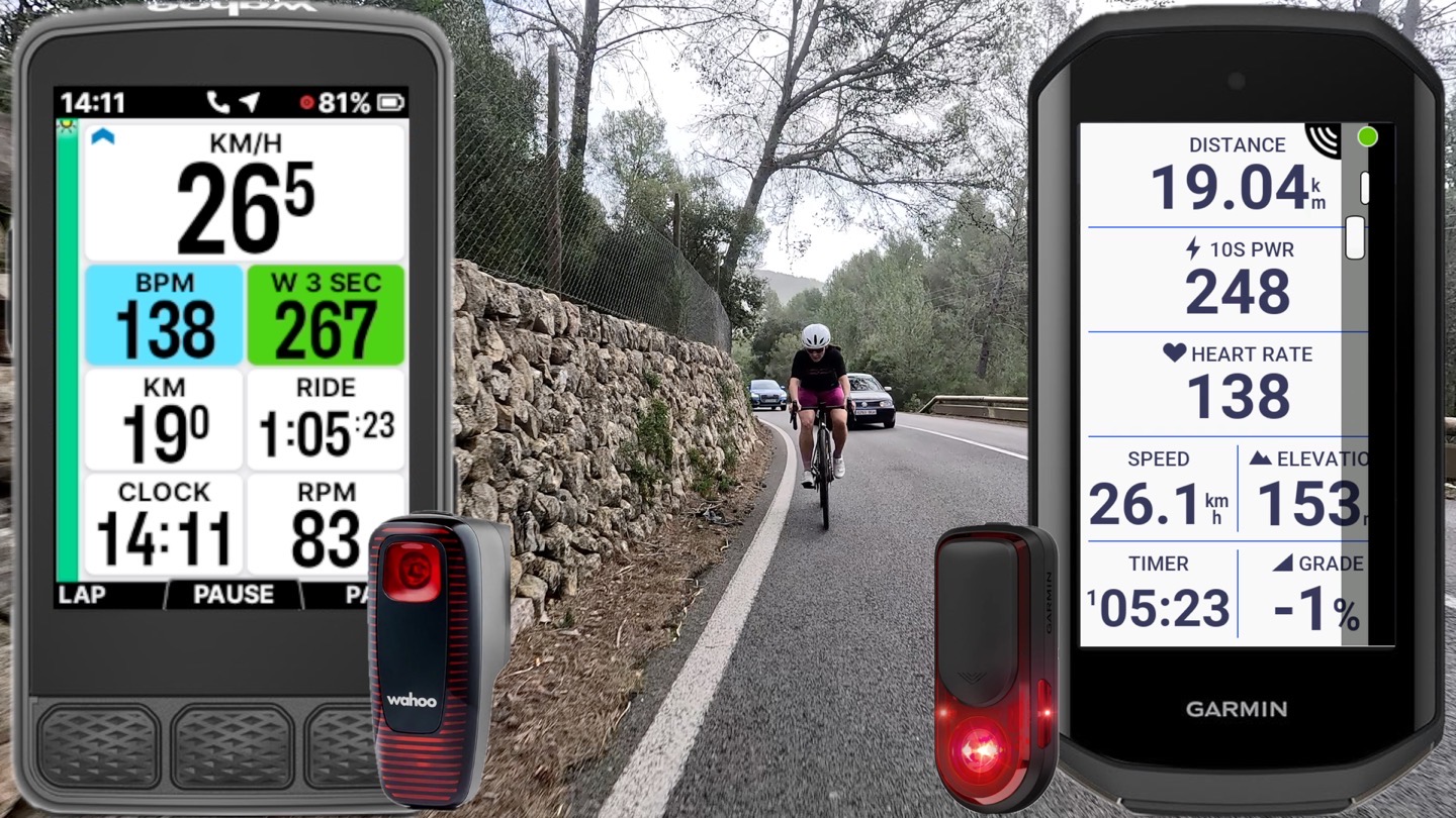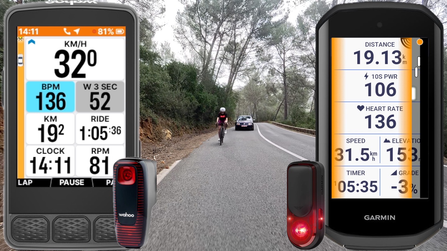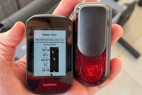 And here’s the Wahoo ROAM 3 with the Garmin Varia RearVue 820: