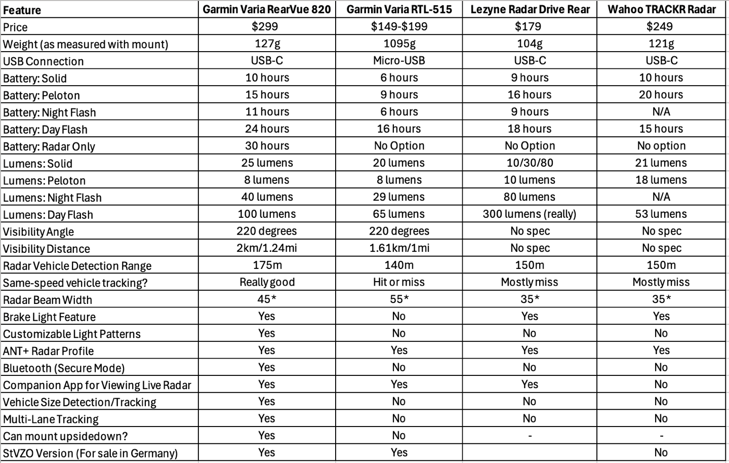 Of course, on paper, some of these seem similar. But in reality, the big ticket item here is accuracy and detection of the radar. It’s clear Garmin is using a new underlying radar chipset here, and certainly, their existing one is widely considered the gold standard. In my continued testing, the existing model easily beats Wahoo’s TRACKR radar in terms of accuracy/reliability (side-by-side), while the newer Lezyne radar is really good in my testing thus far, though not quite as good as either Garmin unit (but better than Wahoo).