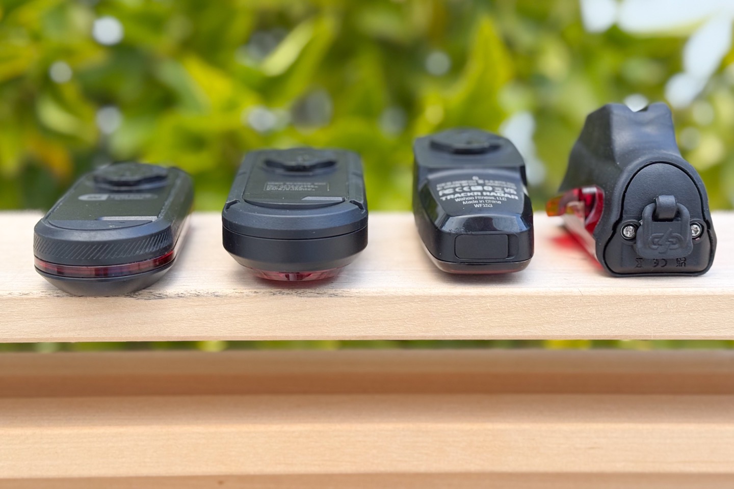 Here’s a look at how this unit compares in size to that of the existing Garmin Varia RTL-515 radar, the Wahoo TRACKR Radar, and the Lezyne Radar Drive. They each have their differences, though on the whole they’re kinda similar honestly. I think Wahoo has the cleanest looking design, though of course Garmin bulks up on size to translate to battery (and better accuracy/reliability).