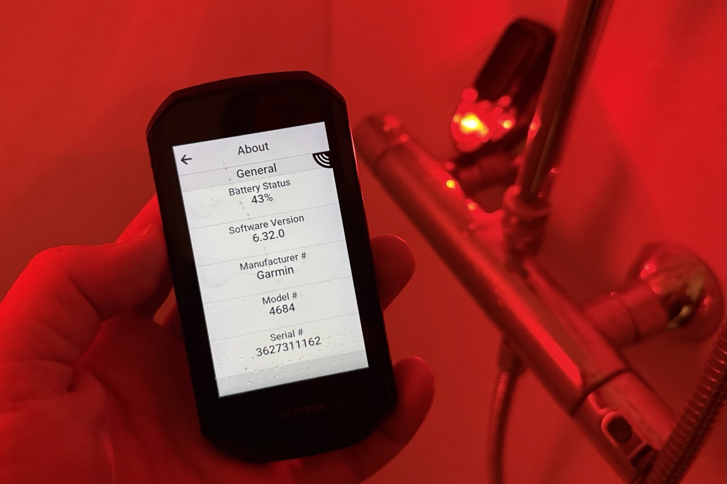 Peloton Mode (Solid-on): In this mode, Garmin’s claim is 15 hours of battery life. In a ride yesterday for 2hrs 20mins, I checked at the 2hr marker, and the battery had gone from 65%to 50%, so an estimate of 13.33hrs. The only slight caveat is the first 10-15 minutes of that I was in solid-on mode (which burns 50% more/hour), before my wife reminded me to switch. Thus the very slight undercutting of the 15 hours claim.