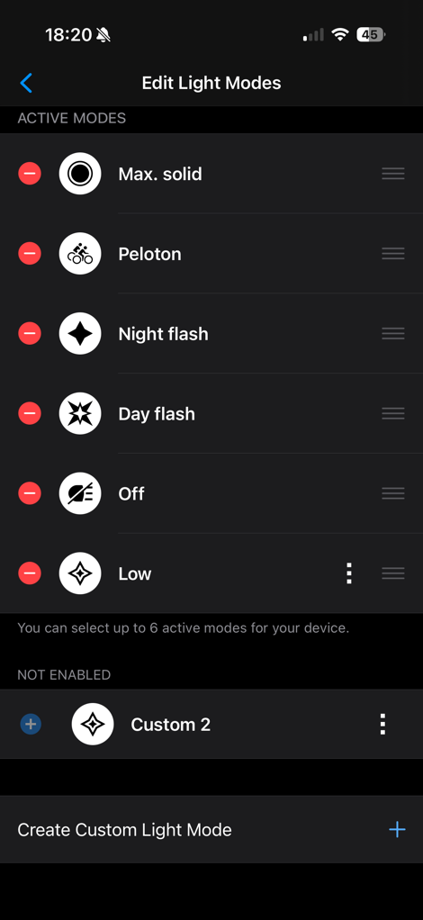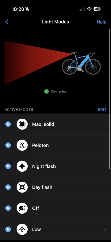 These core modes haven’t really changed, though there is a new radar-only mode, which gets significantly higher battery life by turning off the light. However, there is a new option letting you create and configure your own light modes, with configurable blink patterns as well as intensity levels. You’ll create these via the smartphone Varia app: