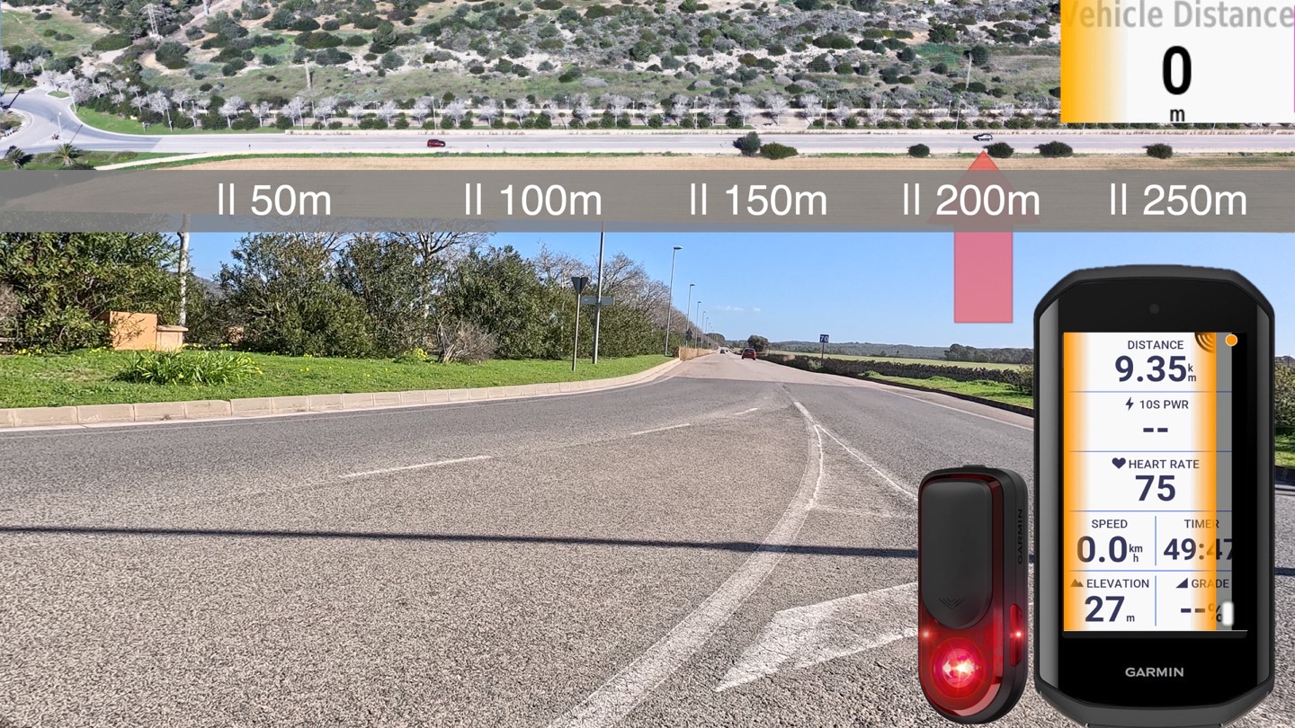 That’s because the ANT+ radar spec has a capped distance of 196m, and thus when Garmin transmits on that protocol (vs secured Bluetooth), if the vehicle is beyond 196m, then it’ll show it as a lower value first. So if a vehicle is at 210m, it’ll show as only 14m beyond you, then it hits 196m, and then it shows back at 196m again. You don’t see the actual value, but you *will* see the car jump from nearly running you over, to far far far away again. It doesn’t do this on the x40/x50 series devices with secured Bluetooth. Anyways, here’s a good example of this comparing a Wahoo ROAM showing the car directly behind me for a split second, before it shows the correct placement once it hits 196m: