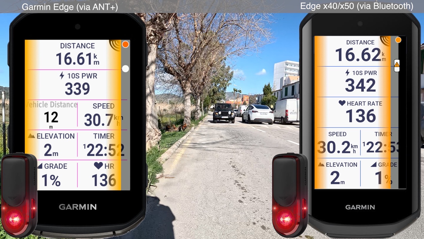 Here you can see the Garmin already detected the vehicle, and it’d be upwards of 3 seconds further until Wahoo detected it: