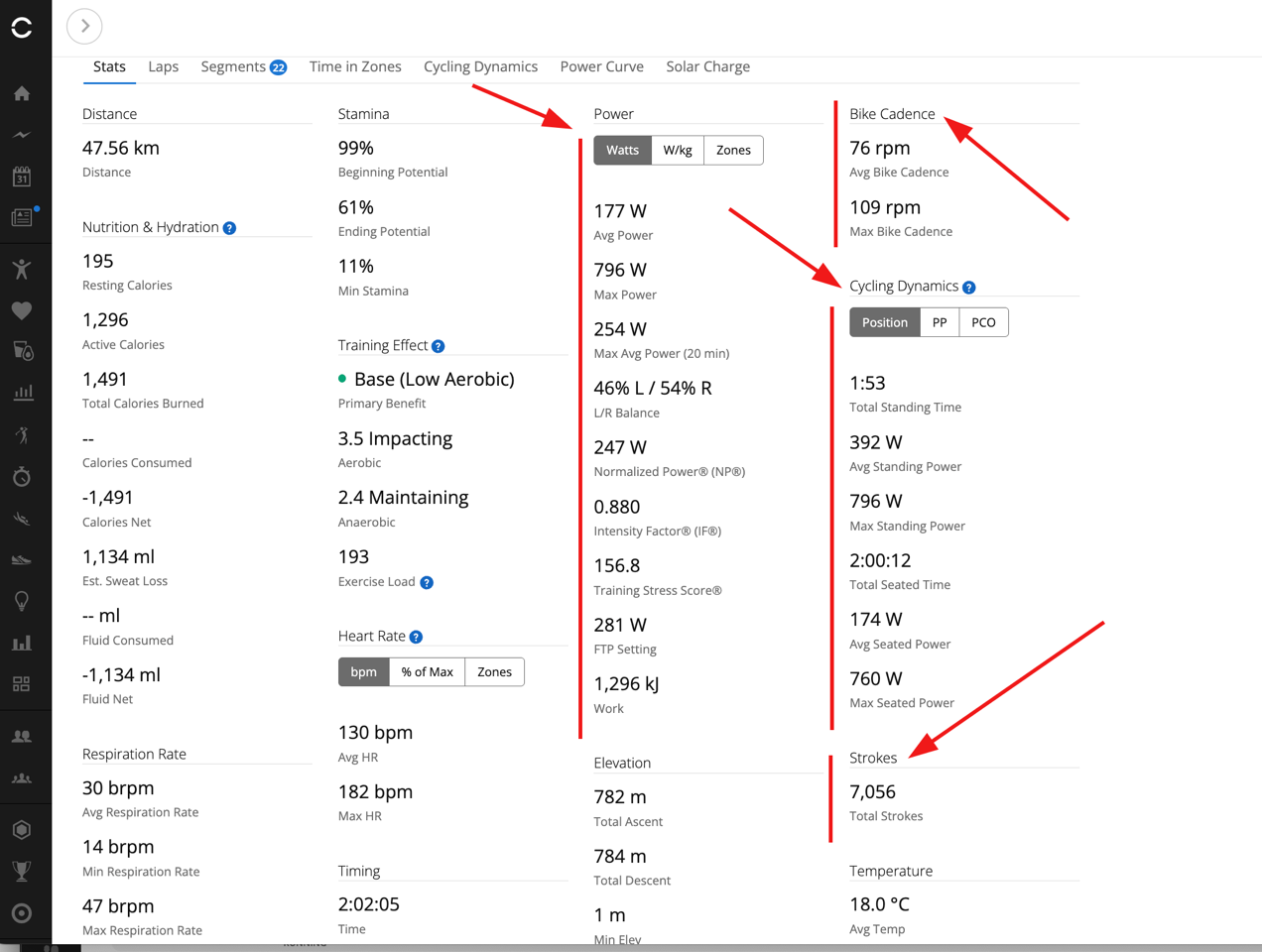 And same goes for the Cycling Dynamics data, assuming you’re paired on ANT+: